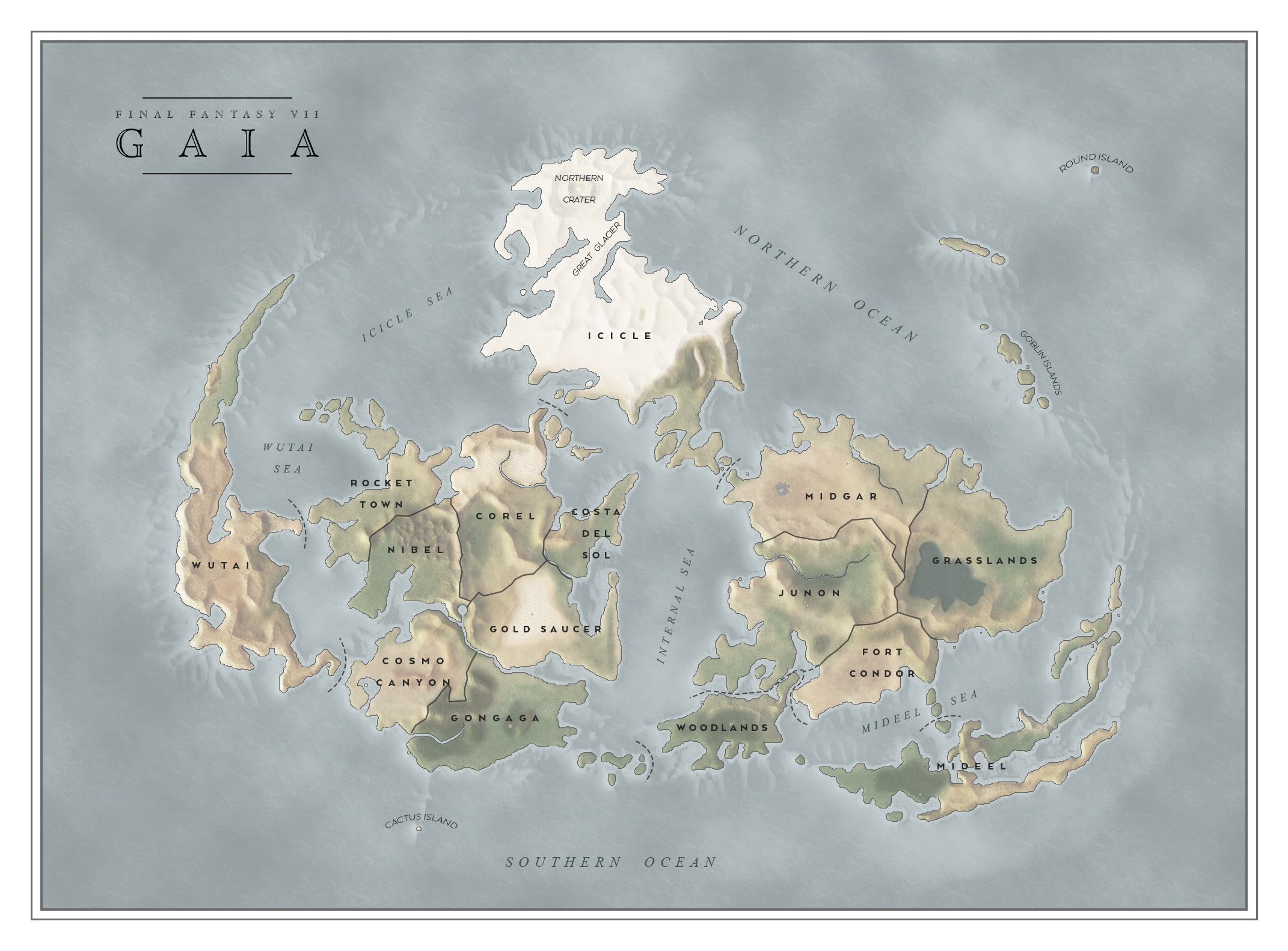 Map of Gaia (Final Fantasy VII) | Fantasy world map, Final fantasy